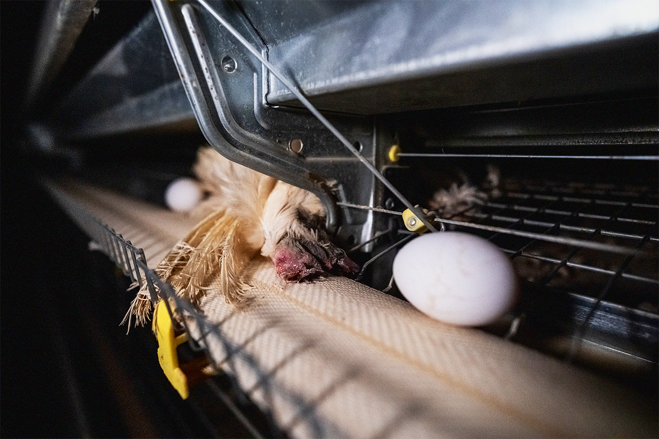 Many of the eggs on Giant’s shelves come from facilities you’d never choose to step foot in. Giant sources eggs from battery cage farms: filthy, dark sheds in which thousands of hens are crammed inside tiny wire cages. There’s no way around it — these industrial complexes are simply cruel and disgusting.