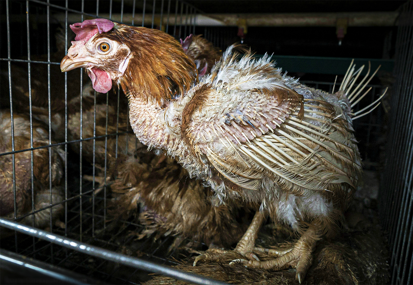 Egg-laying hens are forced to eat, sleep, defecate, and lay eggs in the same cage day after day. These facilities are so controversial that they’re banned in numerous states and dozens of countries. Even McDonald’s doesn’t use them.
